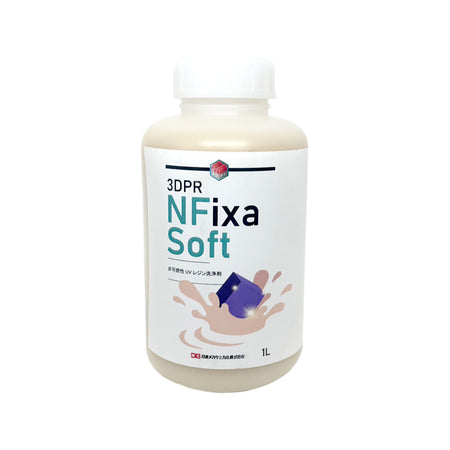 ・NFixa Soft は、やや濃度を持たせた設計で、比較的頑固な付着レジンや厚みのあるレジン残留にも力を発揮。・NFixa Pure は、非常に低粘度で細部や微細構造の洗浄力に優れており、複雑形状や内部スリットのあるモデルの洗浄に最適。造形物の形状・用途・仕上がりで使い分けいただくことで、理想的な結果が得られます。