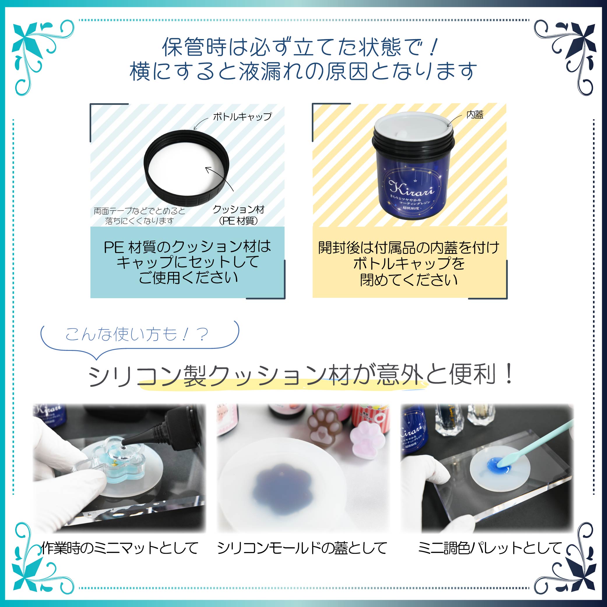 レジン作品の表面に薄く塗って美しく『きらり』とツヤやかな仕上がり
